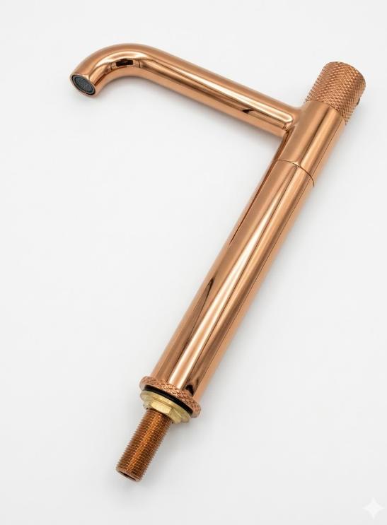 The Luxelet Spectre RG is the ultimate expression of modern opulence. By combining the sharp, aerodynamic architecture of the Spectre series with a radiant RG (Rose Gold) finish, this 12-inch “Tall-Boy” fixture serves as a high-fashion visual anchor for luxury countertop vessel basins, perfect for creating a warm, contemporary brand aesthetic.